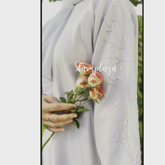 A graceful light grey masterpiece crafted from luxurious Barbie material. 🌸✨ This lightweight, flowy fabric offers both comfort and elegance, making it perfect for any occasion. Complete the look with the matching sheila for a seamless and sophisticated style. 💖